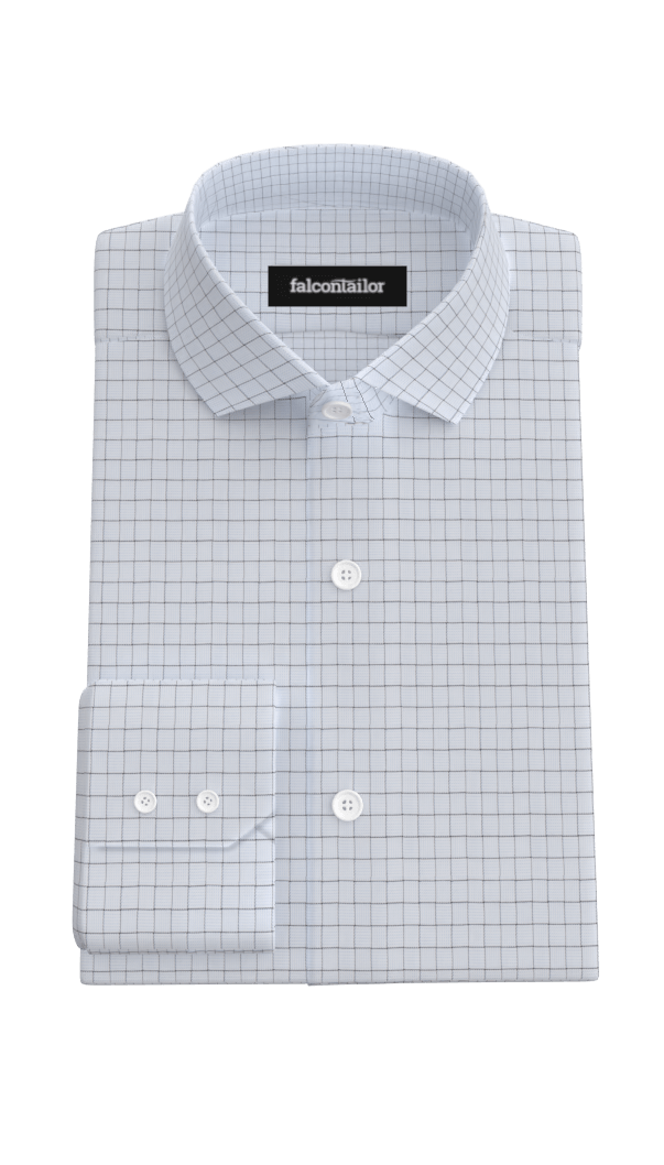 Light blue shirt with discreet black checked pattern in premium silky finish Non-wrinkle cotton blend from NEWBURY.