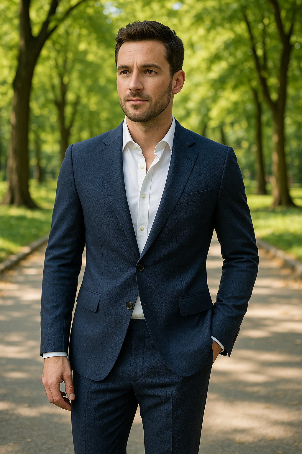 Medium dark blue suit in super 150’s 80% high wool blend by Giorgio Vito’s Regalia collection