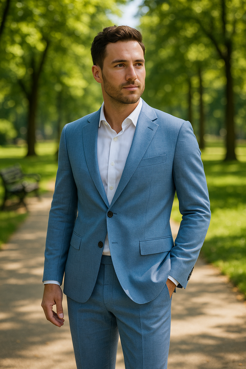 Light blue suit in super 150’s 80% high wool blend by Giorgio Vito’s Regalia collection.
