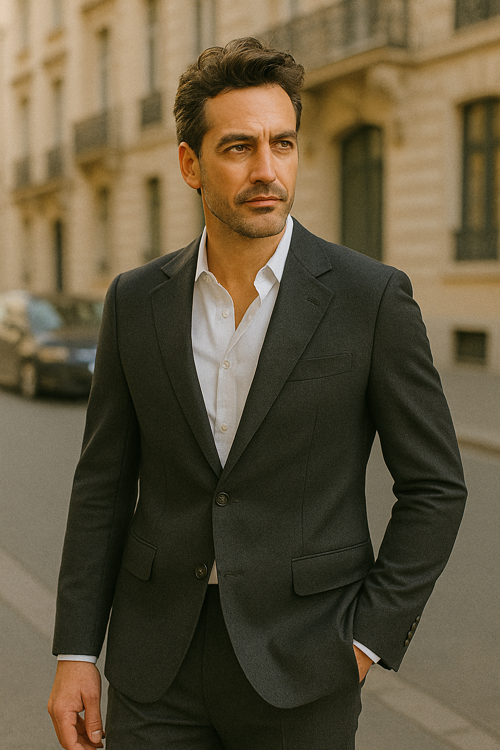 Mörkgrå kostym i superfin 150’s ullblandning från Giorgio Veneto.